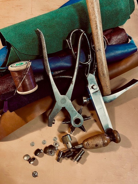 Lederportemonnaie herstellen, Schuhwerkstatt kennenlernen, Umgang mit Leder, Werkzeugen und Maschinen.
