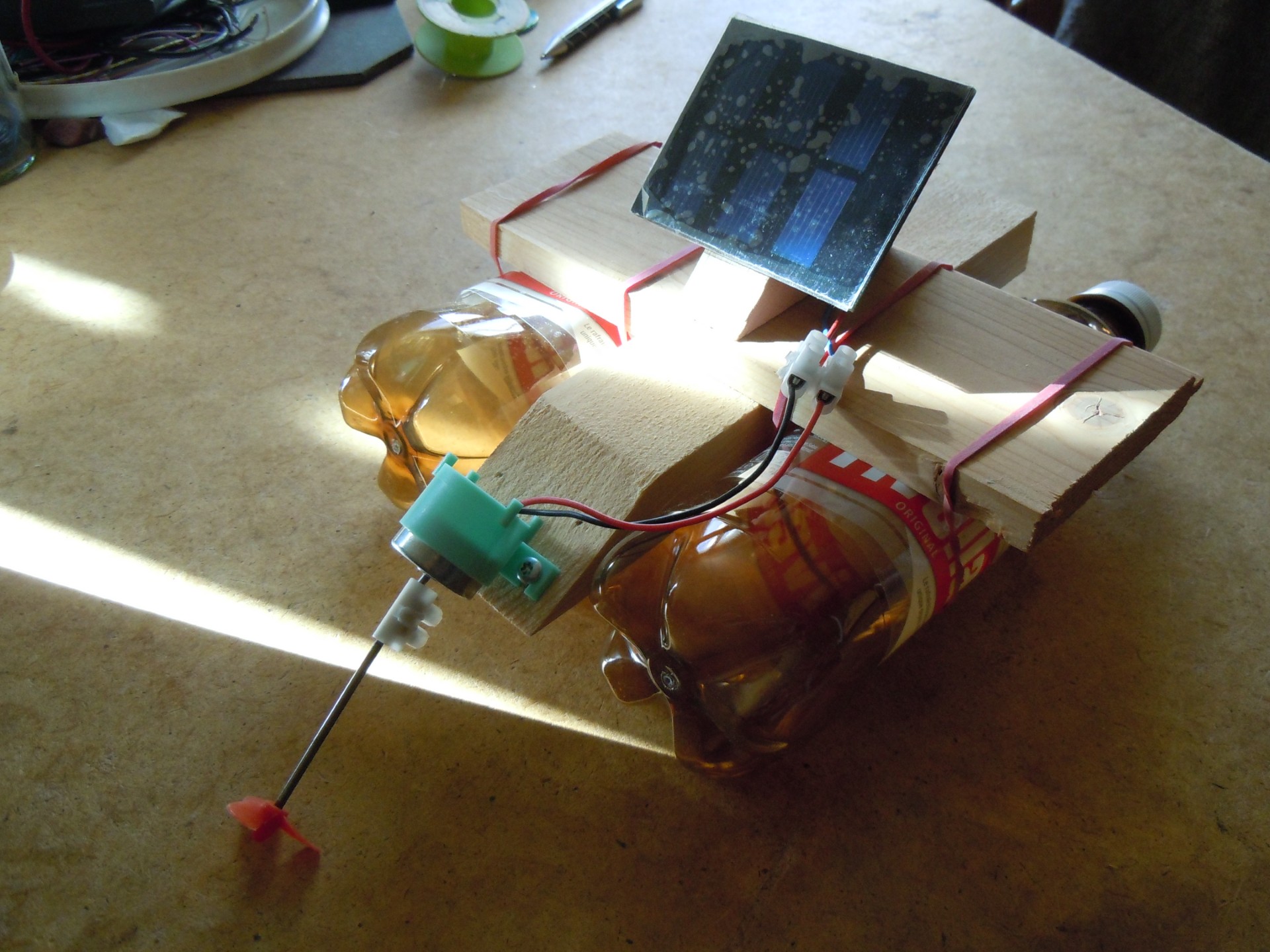 Das selber gebaute Schiff fährt, sobald die Sonne scheint.